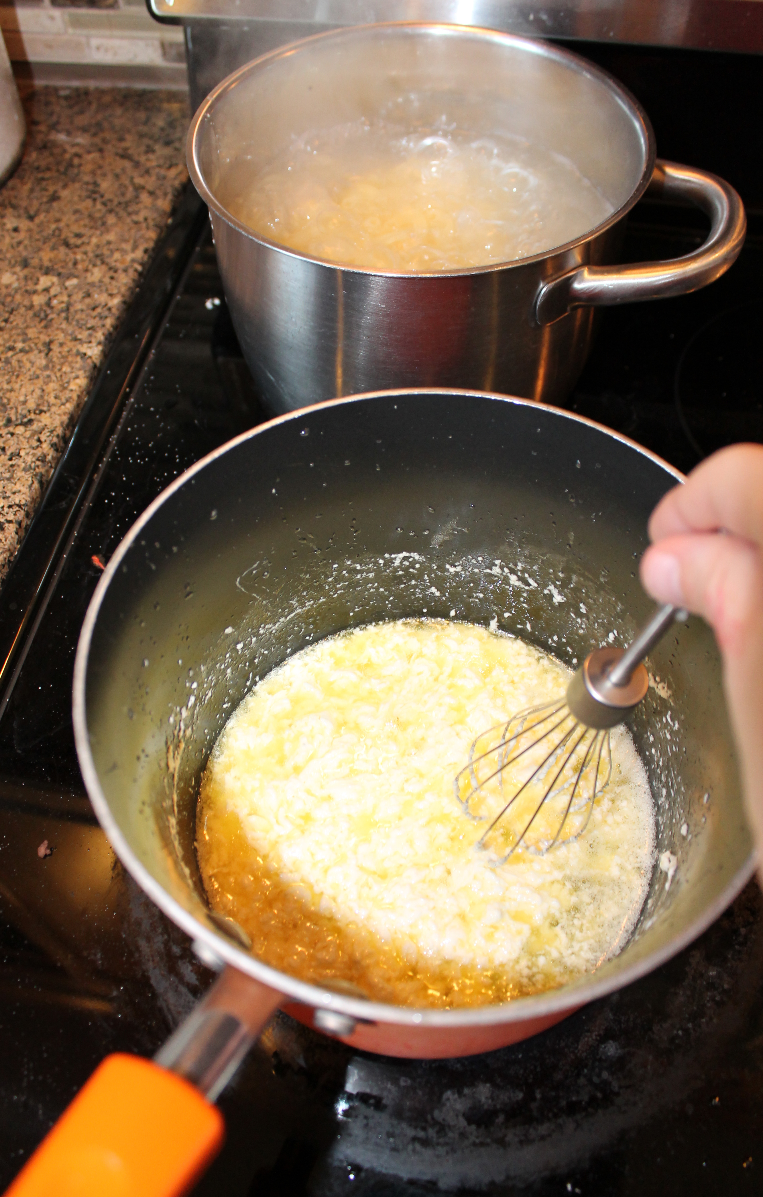Making the alfredo sauce (and boiling the pasta.)