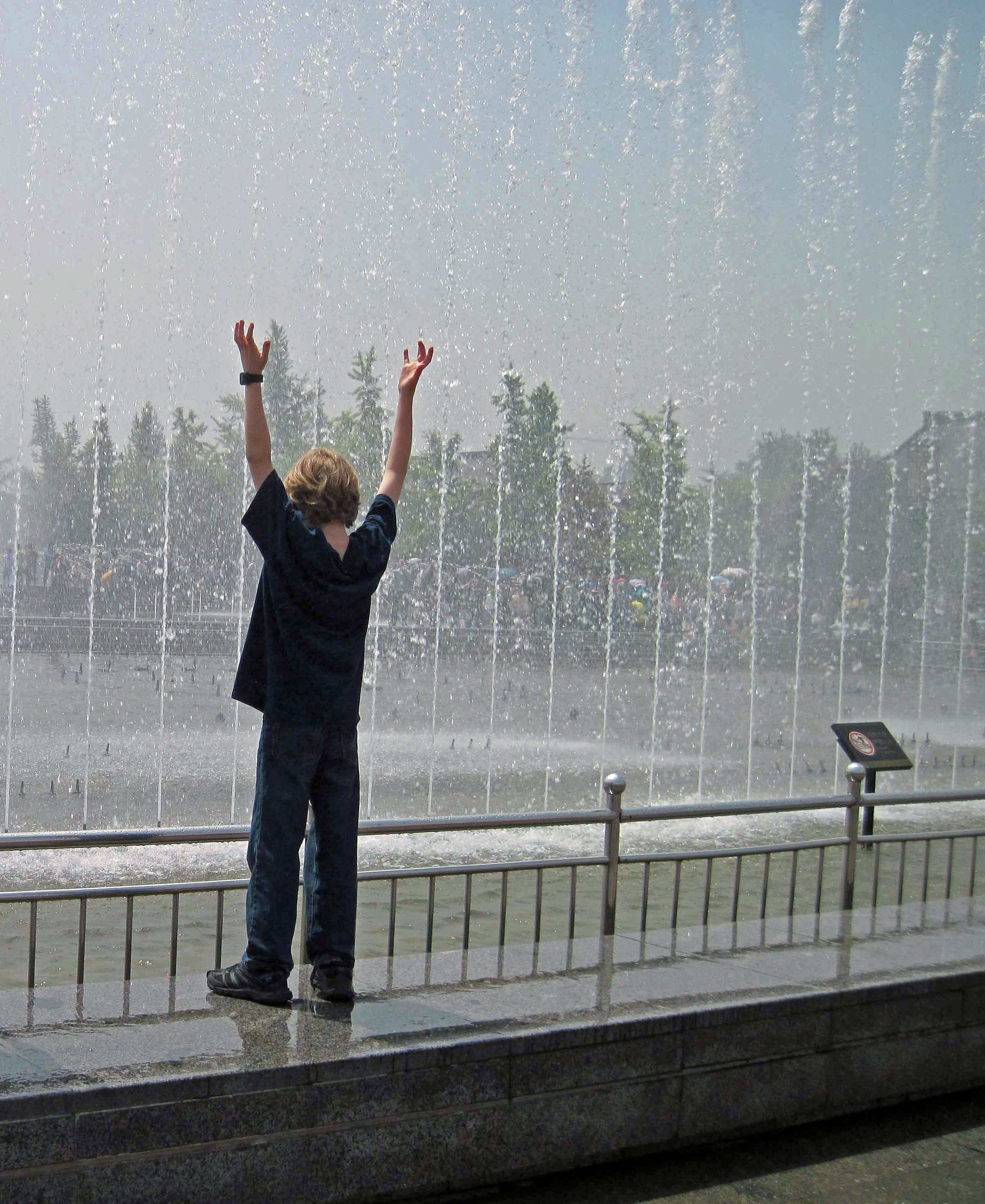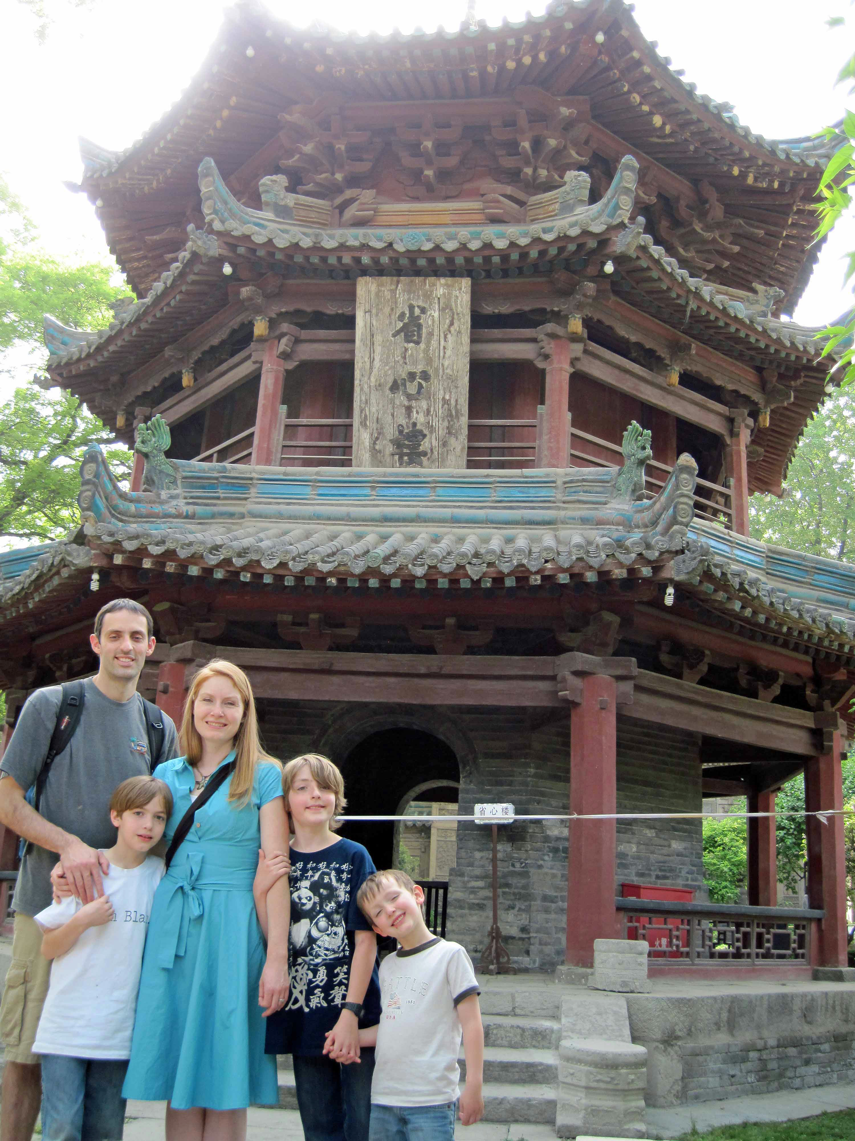 After a few hours wandering the market and a fantastic lunch in a hole-in-the-wall local restaurant (whose name I cannot remember, sadly) we headed off to see a local favorite, the fountains of the Dayan Pagoda. These “dancing fountains” are synced to music and are a huge draw for Chinese tourists, but we didn’t see many other foreigners. This meant, of course, that we became the attraction, but the boys sat patiently for several minutes of photos with strange children before we apologetically pulled them away to enjoy the show.