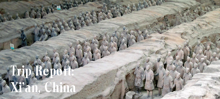 Another of our last-minute adventures before leaving China was a weekend in Xi’an to see the Terracotta Warriors. This amazing army of soldiers built by Emperor Qin Shi Huang, the first emperor of ‘unified’ China. (In fact, his name, pronounced Chin, is the reason China is called China.) Archaeologists estimate that the pit-palace complex contains more than 8000 individualized statues, as well as hundreds of chariots, horses and servant statues.