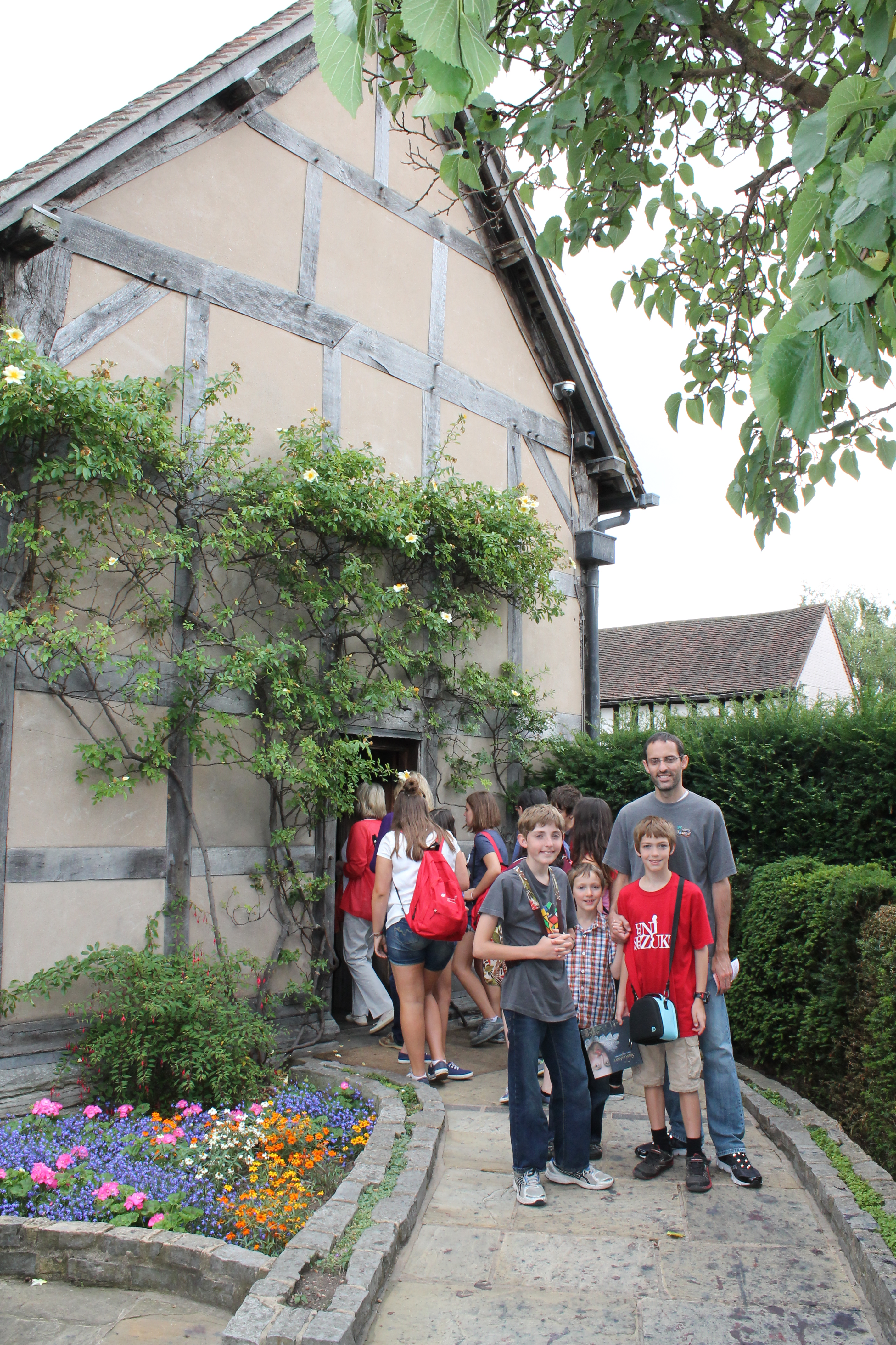 The author's family in front of Shakespeare's birthplaceEspecially fun was the chance to perform in a spontaneous scene from A Midsummer Night’s Dream (subject of said picture book) with a real Shakespearean actor in the garden. Leafy Isaac made an especially convincing Wall.