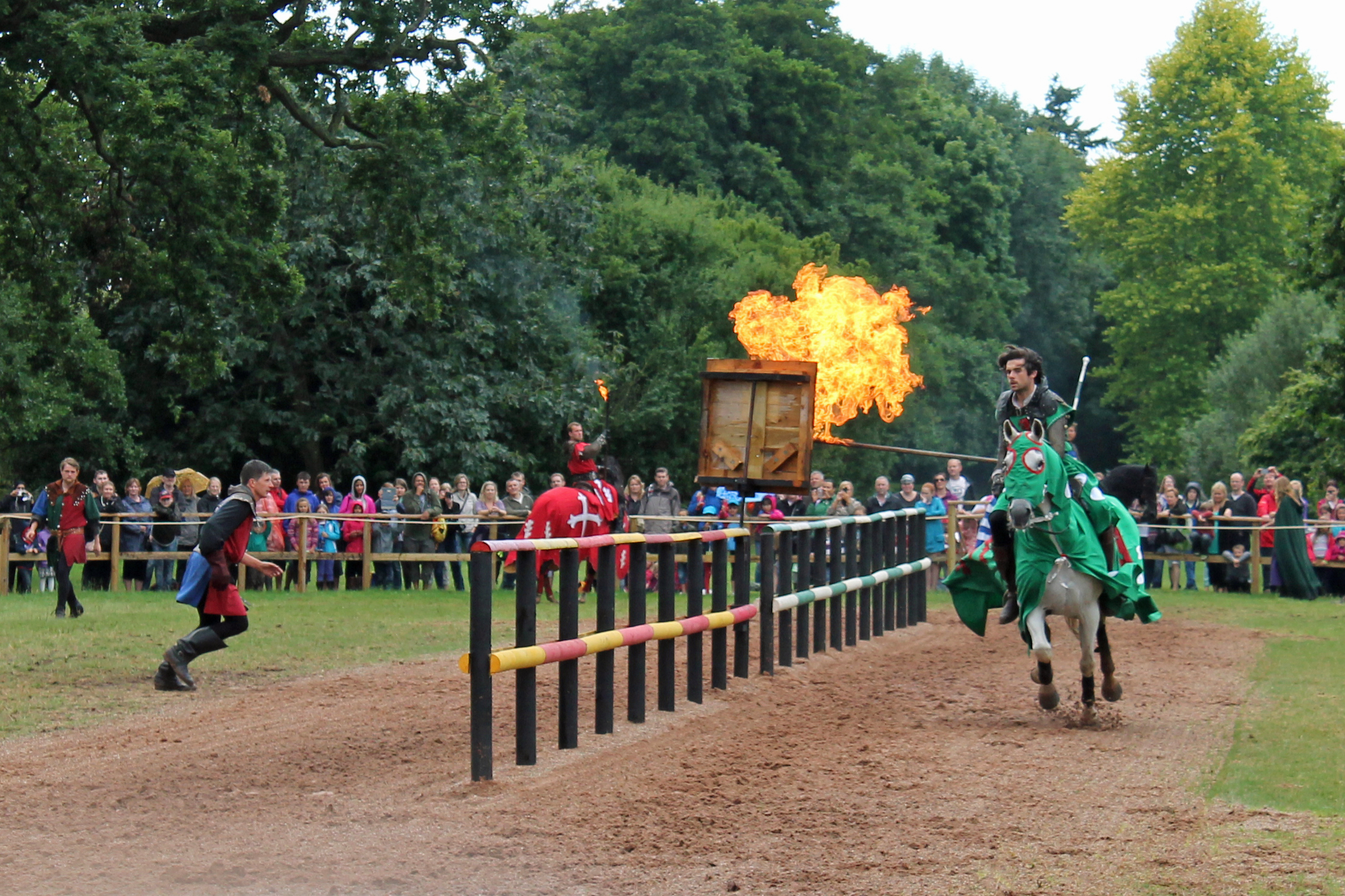 Actors in medieval costume stage a swordfight A costumed rider sets fire to a target bag with his flaming lanceAn added bonus this summer was the Horrible Histories Fayre which gave the kids the chance to learn about the many different periods of history that Warwick Castle has experienced. They loved learning about sewage disposal in the Middle Ages, overeating and decadence during King George, the horrific medical theories of the Elizabethans and warfare under the Stuarts.