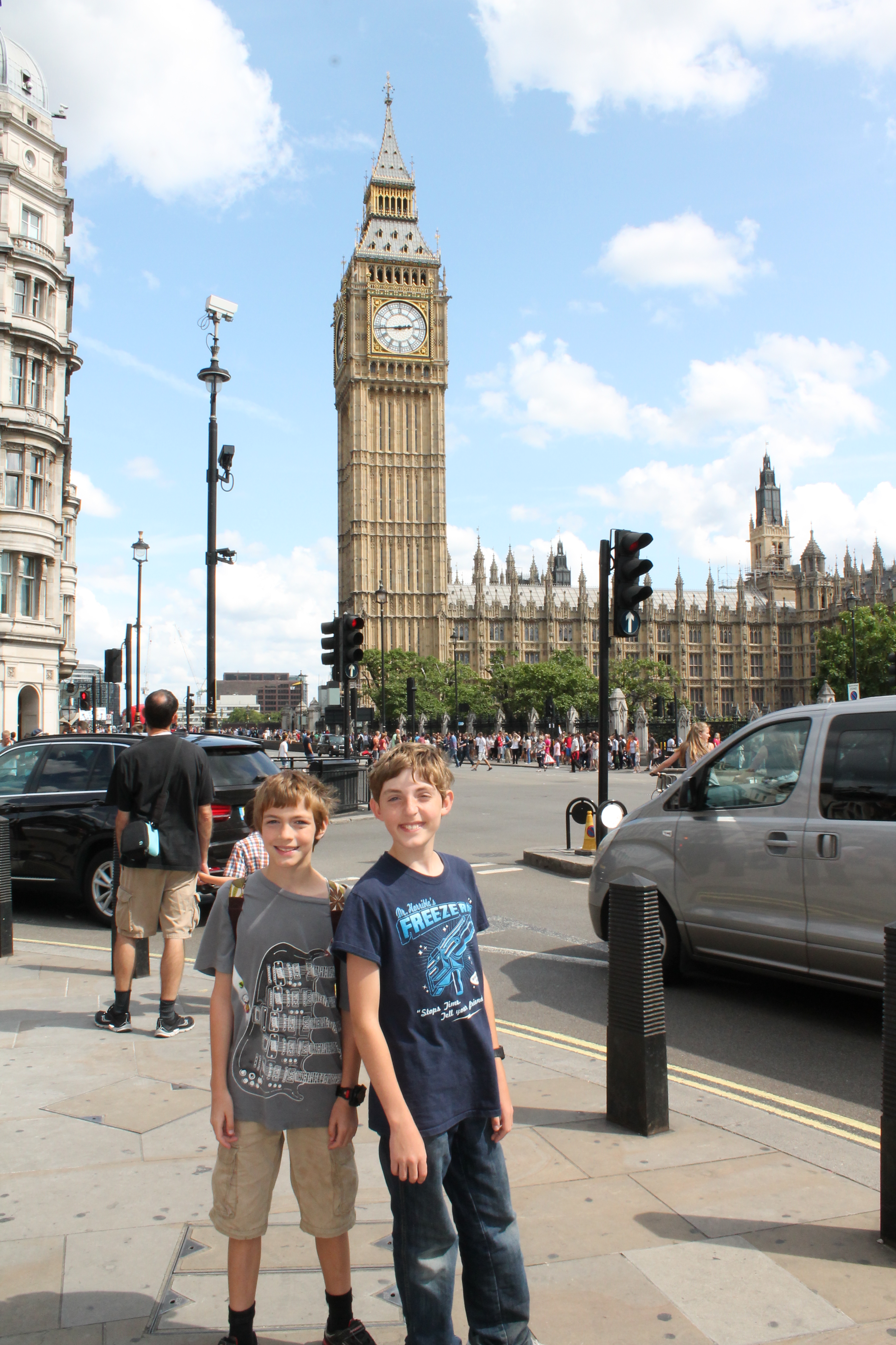 Two of the author's children stand in front of Big BenThis was the only real disappointment of the trip for me, because the PreRaphaelite gallery at the Tate is one of my favorite places in the world. And it was closed. Sob. Okay, not closed, but blocked off so I could only see my favorite paintings from the doorway. Tragic. But we spent a few hours in the rest of the museum and had a lovely time.