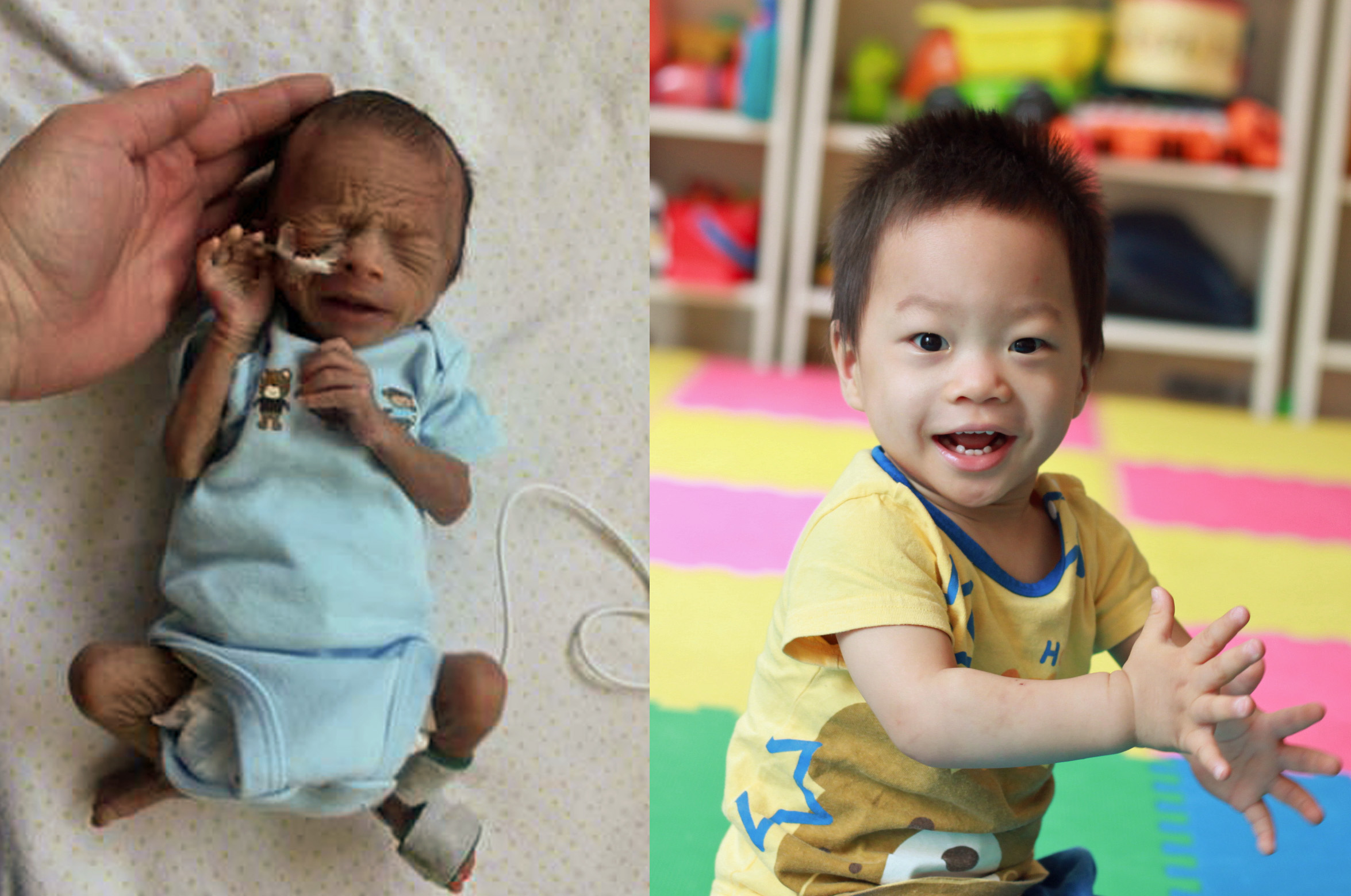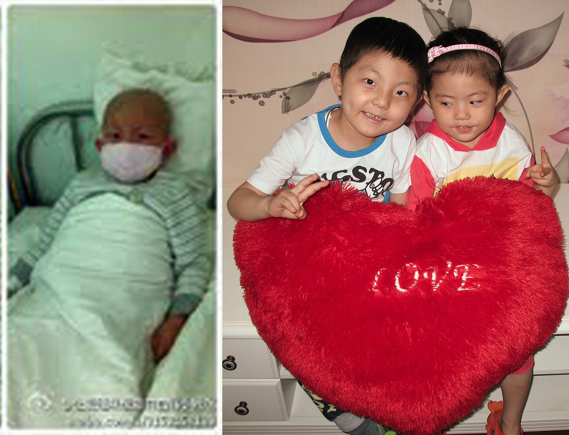 An Long when he arrived at China Little Flower, and shortly before he joined his new family in the US. (All of his medical bills were paid by Roundabout)